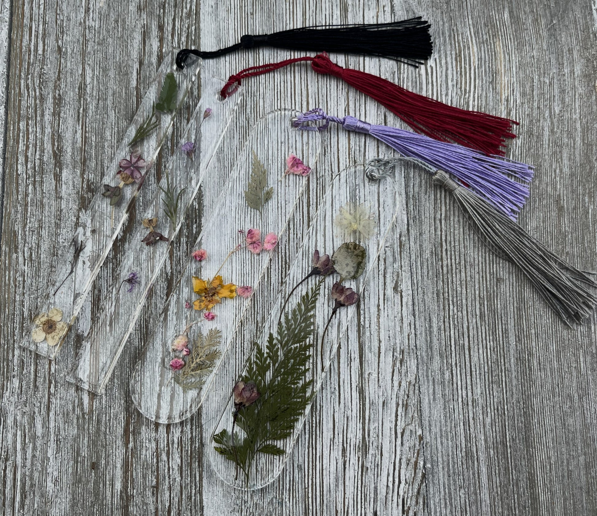 Soft, dreamy, and full of whimsy—this floral bookmark is like a quiet walk through a blooming garden. Handcrafted with real dried flowers and fern-like leaves, each one is a little work of art, preserved in clear resin to hold nature’s beauty right between your pages.